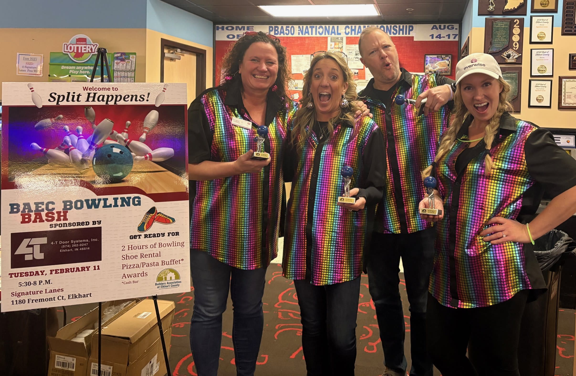 This was a hit last year - so sign up now. Register as an individual (we will put you on a team) or sign up a 4-person team. 4T Door is our premier sponsor again this year (thank you!). We are still looking for a pizza buffet sponsor and an awards sponsor. Each sponsorship is $300 and 2 of your team members can bowl for free. Cost is $50 person and includes 2 hours of bowling (shoe rental included), a pizza and pop buffet (cash bar also available) and possibly, some fantastic awards for your bowling skills (although no skills are necessary to bowl in this event!). Dress the part to win the "Best-Dressed" Team!